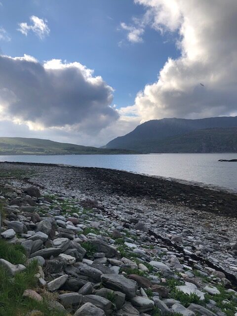 Das letzte Ziel für den heutigen Tag führt uns über schmale Straßen durch typische felsige, grüne Hügel zu einer stimmungsvollen Bucht.