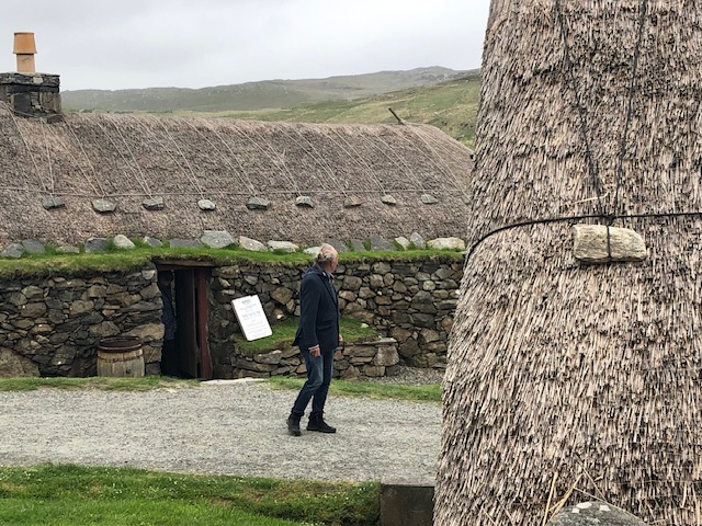 Abermals steht uns ein Fussmarsch bevor zum Nachbau eines Hauses aus der Eisenzeit. Das Haus (Bostadh Iron Age House) wurde in den Boden gebaut, lediglich das Dach schaut heraus.