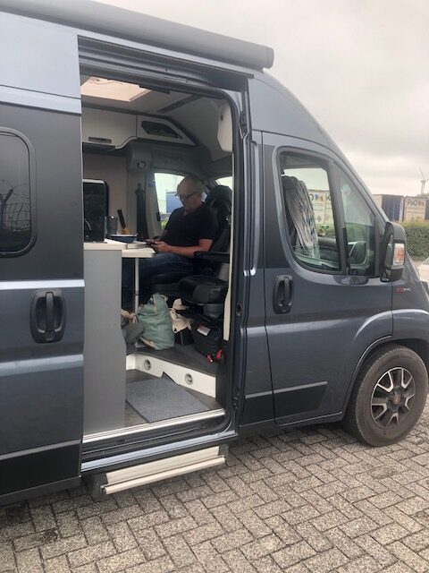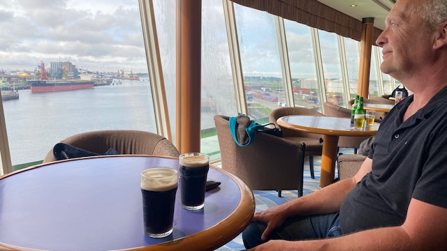 Entspannt starten wir unsere Fahrt nach Rotterdam zum Fährhafen. Unser Bus entpuppt sich wieder einmal als wahres Raumwunder und wir finden Platz für all unseren ‚Krempel‘. Der gut gefüllte Kühlschrank arbeitet über Nacht für uns. Mit unseren neuen Lithium-Batterien haben wir keine Sorge mehr, dass diese sich stark entleeren. So schnurrt unser Baby fröhlich über die Autobahn. Sobald wir aus dem Ruhrgebiet ‚rausgeploppt‘ sind, läuft alles ganz geschmeidig und wir erreichen gegen 15:00 Uhr den Hafen. Bis zum Einchecken ist noch Zeit für einen Kaffee und einen kleinen Imbiss bevor das Gas abgedreht wird.