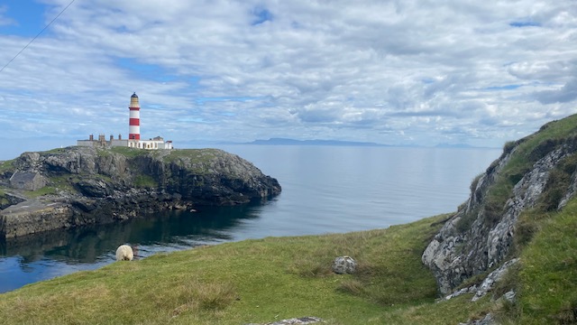 Unsere letztes Ziel vor unserem Platz für die Nacht, den ich zwischendurch online reserviere, ist die kleine Insel Scalpay mit ihrem Eilean Glas Lighthouse. Während wir parken, hält eine Schottin neben uns an und fragt, ob dies der Parkplatz für den Weg zum Leuchtturm ist. Ich erkläre ihr, dass ich nicht sicher bin, weise auf den Schotterweg vor uns hinter der Schranke und erkläre, für uns sei dies der richtige Parkplatz. Lachend nickt sie und bedankt sich.