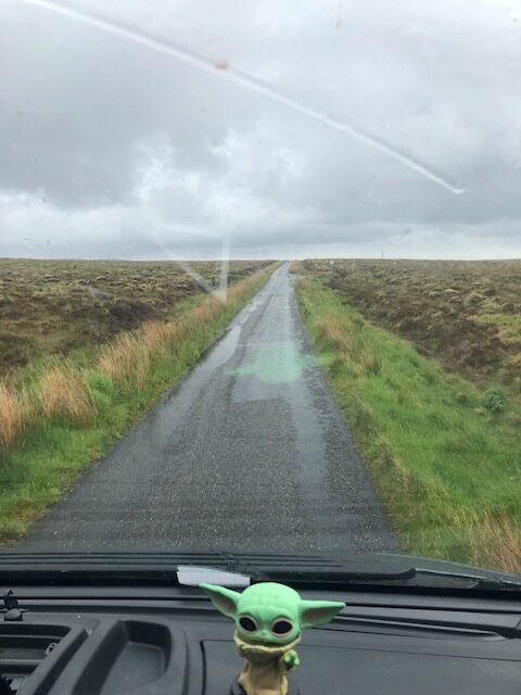 Der linke Außenspiegel ist mein Freund. Ich klebe förmlich an der linken Linie bzw. der Abbruchkante der Straße. Nach ca. einer Stunde Fahrt bemerkt Michael einen Parkplatz vor einem Fischrestaurant, wo wir letztes Mal Fish & Chips gegessen haben. „Hier waren wir schon mal.“ „Aye“, nicke ich konzentriert und warte darauf dass der Tropfen der Erkenntnis fällt. „Hier haben wir unseren rechten Außenspiegel verloren.“ Ich nicke erneut, während mein linkes Auge zu meinem Freund dem Außenspiegel schielt und mein rechtes Auge das entgegenkommende Wohnmobil-Schiff mit den Dumbo-Ohren/Außenspiegeln, das in der Gegenrichtung gefährlich nah an der Mittellinie auf uns zuhält, wahrnimmt.