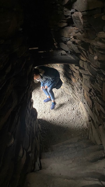 Ein Zugang zu den zwei Außenmauern ist noch vorhanden. Es heißt abermals: in die Knie und Kopf einziehen. Wir sind hinreichend beeindruckt, dass dieser Turm ohne jegliche Art von Mörtel standfest dem Wind, Wetter, Feinden trotzen konnte.