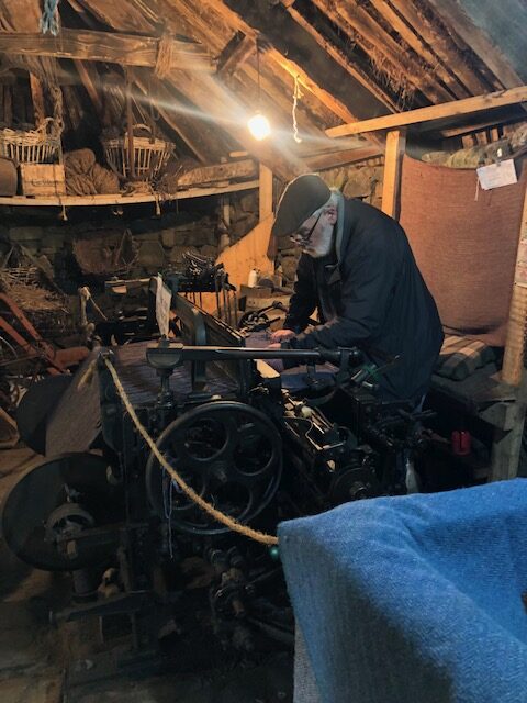 Beim Besuch des Museums überrascht uns ein Einheimischer mit einer eindrucksvollen Vorführung seiner Webkünste des bekannten Harris-Tweeds.