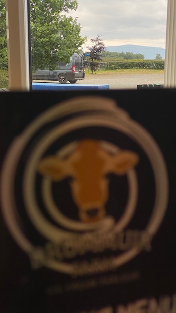Nur wenige Sonnenstrahlen kämpfen sich durch die geschlossene Wolkendecke aber noch ist es trocken. Die Prognose für heute ist heftiger Regen. Wir beschließen einen Tag früher ins 30 Minuten entfernte Gretna Green zu fahren, um neben unseren reservierten Platz für morgen, schon heute ein Plätzchen für die Nacht zu bekommen. Doch zunächst fahre ich einen kleinen Schlenker zu einem Farmhaus und wir stärken uns mit einem herzhaften späten Frühstück. Der freundliche Schotte hinter der Theke fühlt sich berufen, das morgige EM-Spiel in unser Gespräch mit einfließen zu lassen. Er erzählt uns, dass zur Zeit rund 200 000 Schotten in Deutschland sind. Vielleicht begegnen wir ja dem ein oder anderen freundlichen Schotten in unserer Heimat.