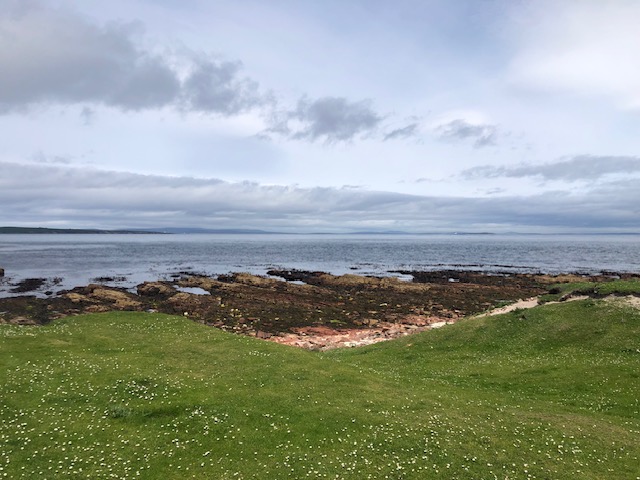 Unsere Gastgeberin sensibilisiert uns für eine Landzunge auf dieser ‚Black Isle‘, wo sich bei der Tide heimische Delfine einfinden. Wir ermitteln die Gezeiten, stapfen um 18:00 Uhr los zwischen dem Wasser, das immer näher rückt und dem Golfplatz mit seinen dem Wind ausgesetzten Bällen. Mal sehen, wer oder was uns zuerst trifft.