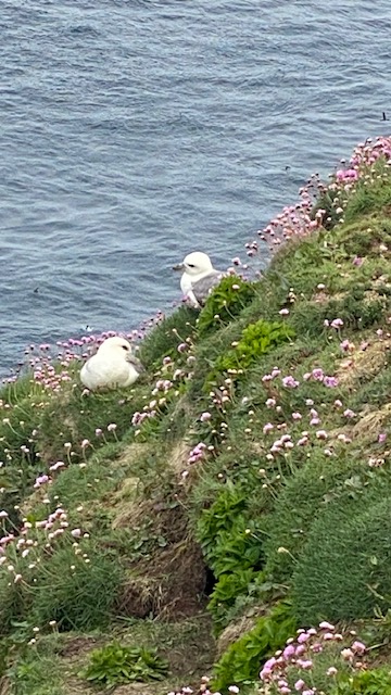 Der letzte Punkt vor dem Rückweg sind die Stacks, ‚Klippen-Stäbe‘ oder eher Türme, die aus dem Meer ragen, die Wellen brechen und ebenfalls voller heimischer Vögel sind.