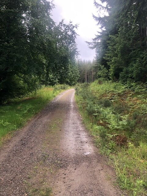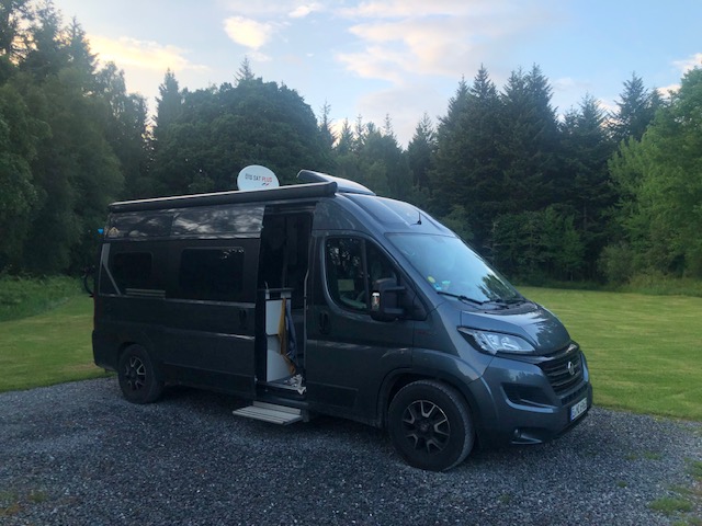 Die Fahrt führt uns tief in den Wald zum Loch Rannoch. Das Schild Richtung Campsite weist uns eine schmale Schotterstraße an. Etwas verhalten tuckern wir langsam in den Wald und mitten im Nirgendwo materialisiert sich ein lichtdurchfluteter Platz hinter einer großen Schranke. Etwas ratlos schauen wir auf den Platz, der zahlreiche leere, ‚hardstanding pitches‘ präsentiert. Wir haben online keine Möglichkeit gefunden, diesen Platz zu buchen oder zu bezahlen, obwohl wir den Anweisungen auf der Webseite genauestens befolgt haben. Wie durch Geisterhand öffnet sich die Schranke – nun denn. Genau ein weiterer Camper steht auf der Wiese. Da es immer mal wieder regnet, bevorzugen wir einen Platz auf dem Schotter.