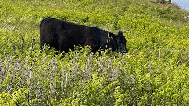 Wir treffen diesmal Rindviecher auf der Straße, die uns allerdings keine Beachtung schenken und gemütlich weiter grasen.