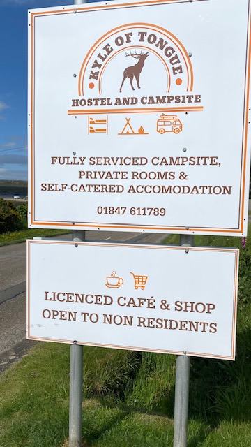 Das Schloss, welches unseren Weg kreuzt, kennen wir schon von unserer ersten Reise, daher halte ich nicht an und klettere mit unserem Bus über die Hügel, oben immer verbunden mit einem Blick auf eine Bucht mit meilenweiten Sandstrand – einen davon kennen wir ebenfalls schon. Die Straße bietet Raum, um entgegenkommenden Fahrzeugen und Schlaglöchern auszuweichen. Das verbale Staccato vom Beifahrersitz bleibt aus und wir erreichen gegen 14:00 Uhr den Camping & Caravan Park in Dornoch.
